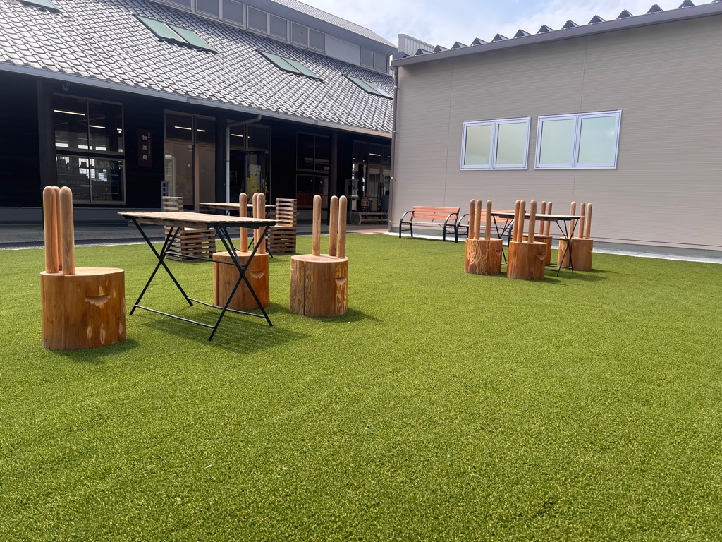 休憩用にテーブルとイスを置いてありますので、お気軽にご利用ください。