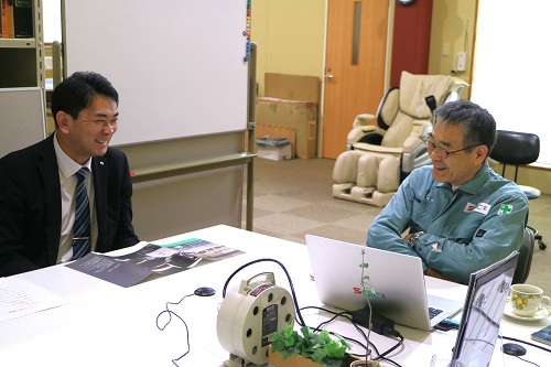 世界一を自負する技術力とがん患者支援の二刀流で活躍する社長と岩佐市長が対談