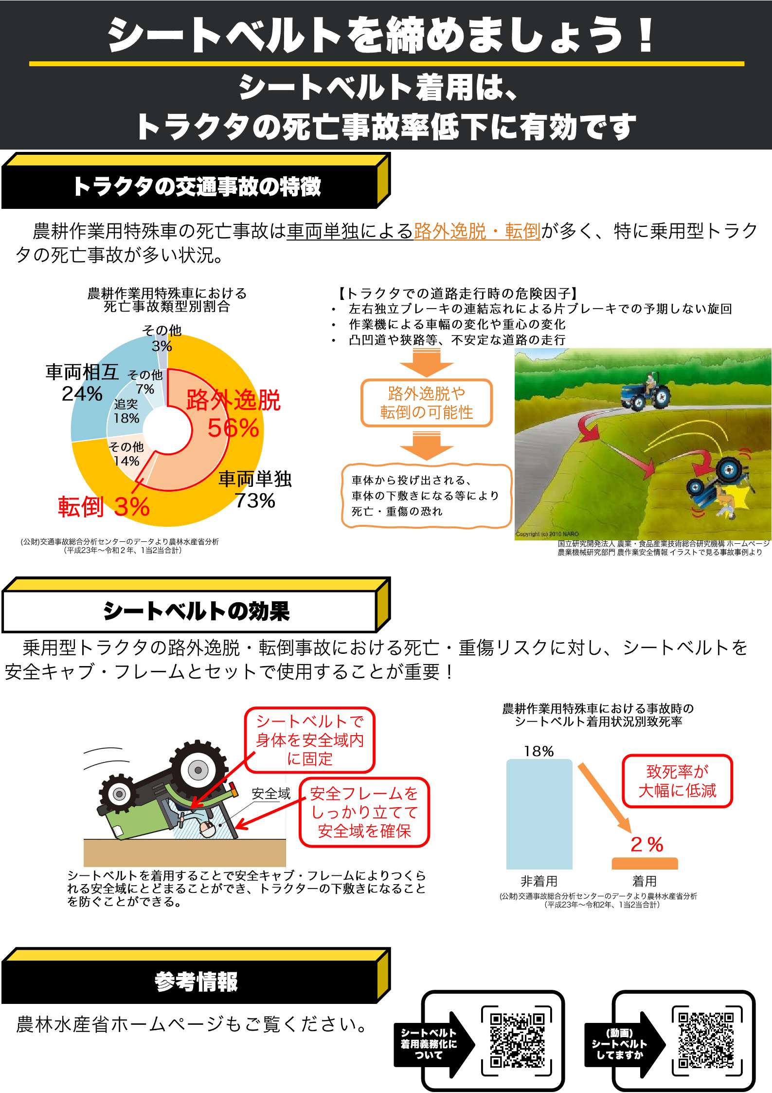 令和9年1月1日以降に製造された乗用型トラクタで道路走行する際には、シートベルト着用が義務となります。