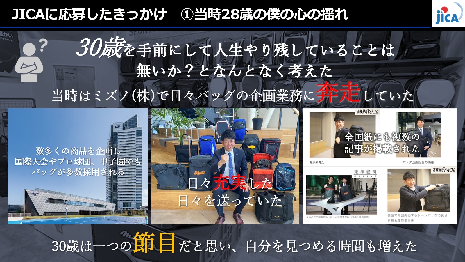 【 篠原隊員が当日使用したプレゼン資料の一部 を紹介します】