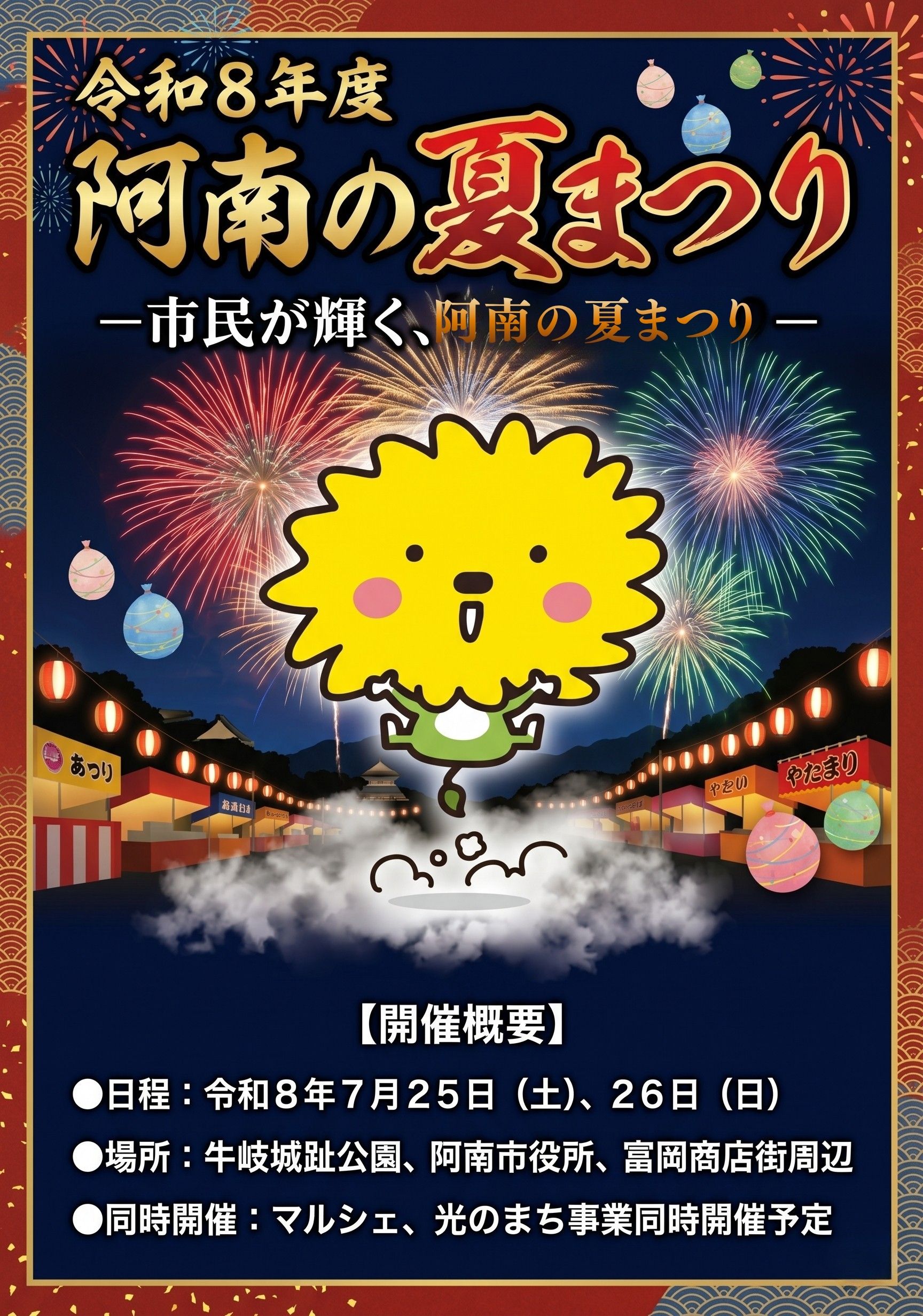 令和8年度阿南の夏まつりの開催日が下記日程に決定しましたのでお知らせします。